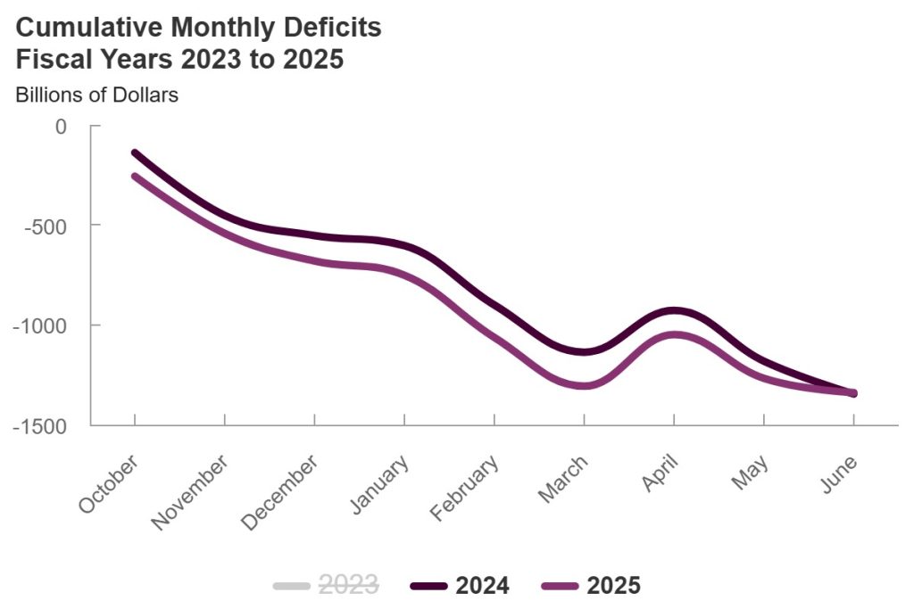 Esto está comparando octubre2024-junio2025 con octubre2023-junio2024. No obstante, si nos ceñimos únicamente a los datos de la primera mitad de 2025, nos sale un déficit de 628.000 millones de dólares.